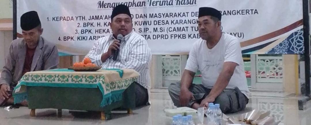 Kegiatan tersebut berlangsung khidmat dan penuh kebersamaan dengan dihadiri tokoh masyarakat, jamaah, serta anggota DPRD Kabupaten Indramayu dari Fraksi PKB, Kiki Arindi.