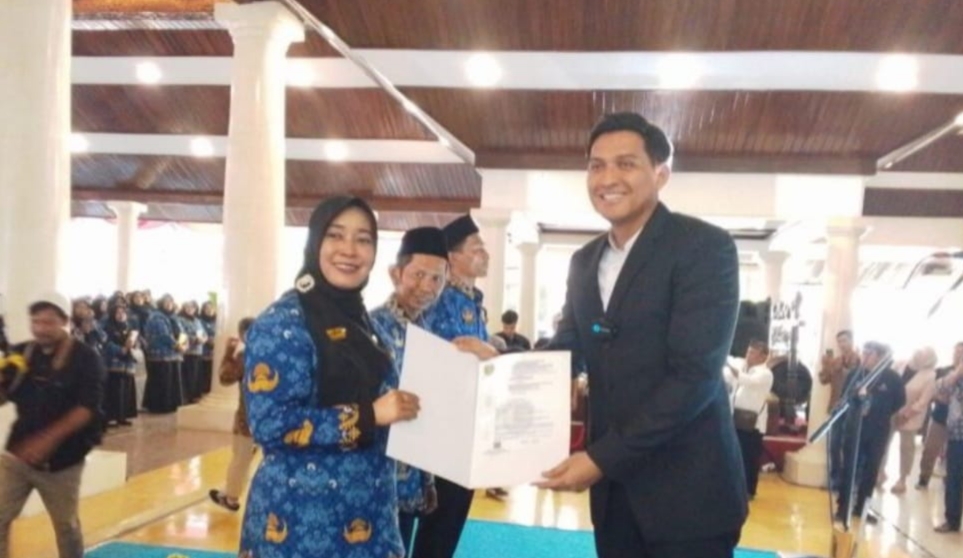 SK Pengangkatan secara resmi diserahkan langsung oleh Bupati Indramayu Lucky Hakim kepada para PPPK terpilih yang telah melalui tahapan seleksi dan dinyatakan lolos sesuai
