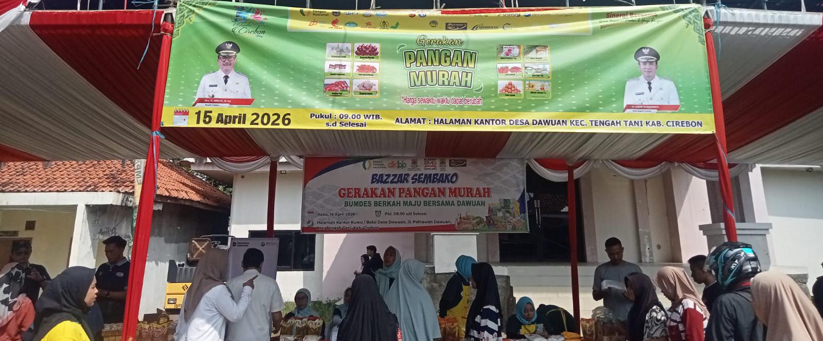 Acara Bazar Sembako Pangan Murah tersebut bertempat di halaman kantor Kuwu Desa Dawuan Kecamatan Tengahtani Kabupaten Cirebon,Rabu(15/4/2026).