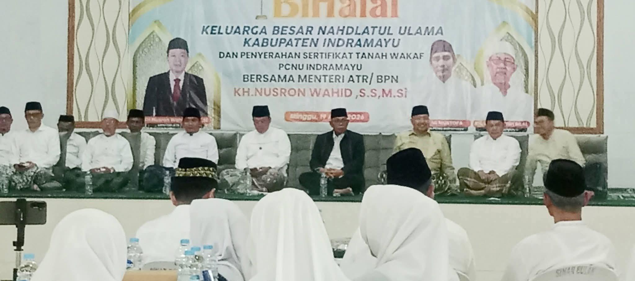 Kabupaten Indramayu (Newssidak.id, Jawa Barat)_Suasana penuh kehangatan dan kebersamaan mewarnai acara halal bihalal keluarga besar Nahdlatul Ulama (NU) Kabupaten Indramayu yang dirangkaikan dengan penyerahan sertifikat tanah wakaf, Minggu(19/4/2026).