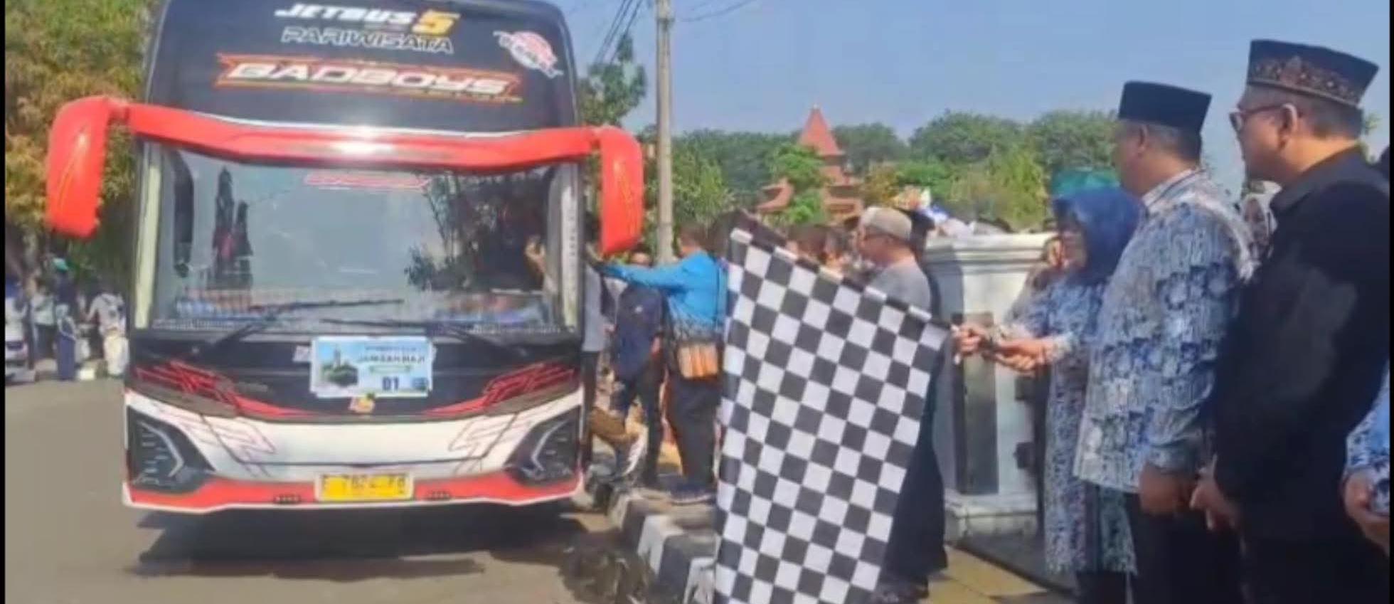 Kabupaten Indramayu (Newssidak.id, Jawa Barat)_ Sekretaris Daerah Kabupaten Indramayu,Aep Surachman, didampingi Ketua DPRD Indramayu, Nurhayati, lepas keberangkatan 445 calon jamaah haji asal Indramayu kloter 01 di Pendopo Kabupaten Indramayu pada Selasa(21/4/2026).