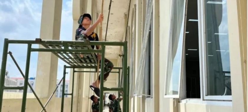 Dalam kegiatan tersebut, para personel membersihkan berbagai area, mulai dari halaman, kamar inap, fasilitas umum, hingga saluran air. Upaya ini menjadi bentuk dukungan TNI dalam menyiapkan sarana dan prasarana agar para jemaah dapat beristirahat dengan nyaman sebelum keberangkatan.
