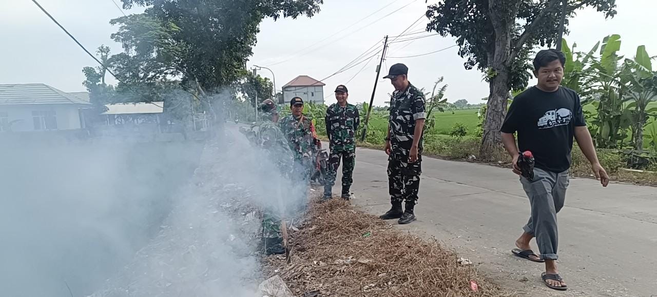 Namun lagi-lagi personil Koramil 1607/Sliyeg tampil mengambil inisiatif untuk membersihkan sampah di sekitaran jembatan Tanjan itu. Seperti yang terlihat pada Kamis(2/4/2026),para personil dengan menggandeng pemerintah desa Sliyeg Lor bahu membahu membersihkan sampah dan membakarnya langsung di tempat tersebut.