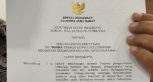Indramayu, NewsSidak.id_Pemerintah Kabupaten Indramayu resmi memberhentikan sementara Kuwu Sukagumiwang, Wasma alias Cempe, dari jabatannya. Keputusan ini menyusul aksi demo ratusan wartawan di
