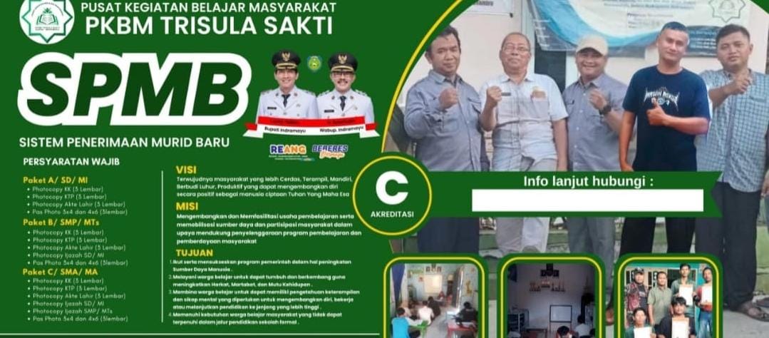 Kabupaten Indramayu ( Newssidak.id, Jawa Barat)_ Pusat Kegiatan Belajar Masyarakat (PKBM) Tri Sula Sakti Indramayu kembali membuka kesempatan bagi masyarakat yang ingin melanjutkan pendidikan melalui SPBM (Sistem Penerimaan Murid Baru).
