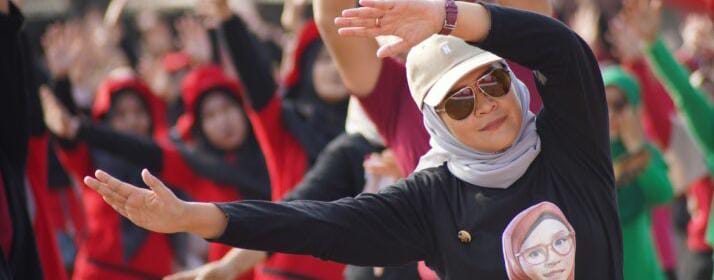 “Alhamdulillah hari ini kita senam bersama dengan ribuan masyarakat, semoga semuanya sehat dan bahagia,” ungkap Nina.