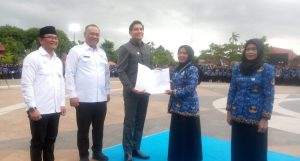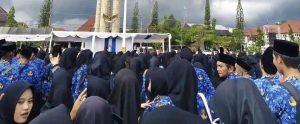 Kabupaten Indramayu (Newssidak.id, Jawa Barat) _ Suasana mendung dan gerimis tidak membuat Bupati Indramayu, Lucky Hakim,ragu untuk melantik 4733 Pegawai Pemerintah Perjanjian Kerja(PPPK) Paruh Waktu